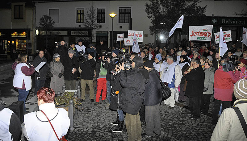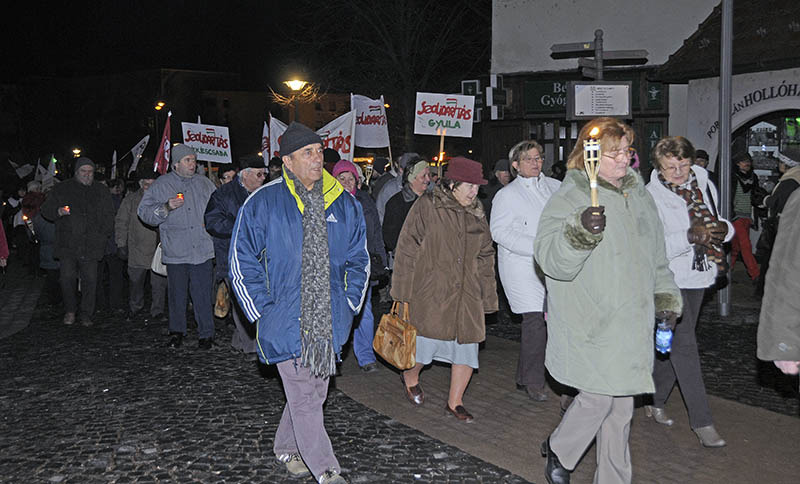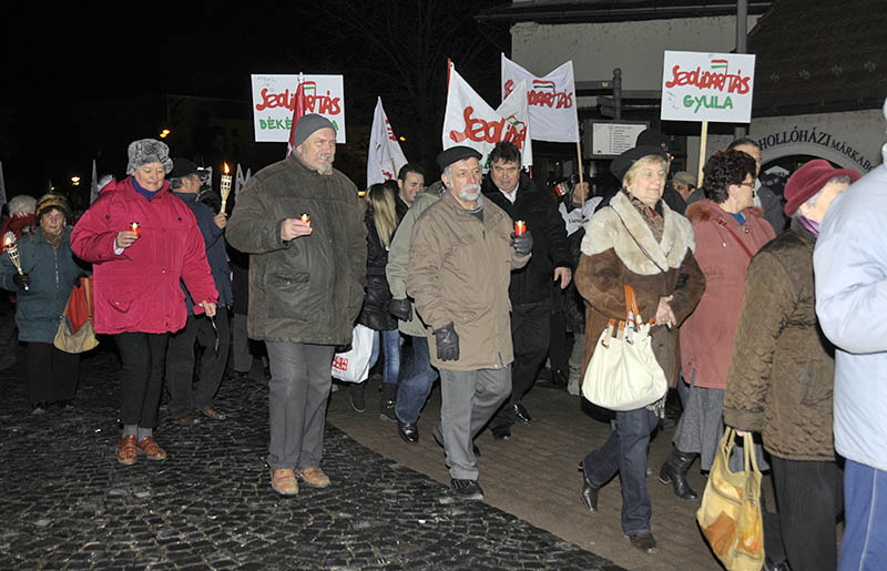– Az ország, amelyben nincs demokrácia, ne essen kétségbe, mert ott még lehet. De az ország, ahol a demokratikus jelszavakkal gyökeret ver a diktatúra, hagyjon fel minden reménnyel – idézte Bod Tamás Simonyi Imre 1946 tavaszán írt sorait. – Már csak ezért is fontos a hely szelleme: Gyula. A történelem ismétli önmagát. Ám ez a mondat Gyulán sajnos igazabb, mint az elmúlt évtizedekben valaha, és ebben van valami roppant szomorú dolog. Mi nem engedjük, nem hagyjuk, hogy demokratikus szavakkal gyökeret verjen a diktatúra, és nem hagyunk fel semmilyen reménnyel. Azért vagyunk itt, hogy 2014 után ne folytatódjon a pocsék politika és a rossz kormányzás, mely kétes eredményeként radikálisan nőtt a létminimum alatt élők száma, csökkent a reálbér, nőtt az infláció, recesszióban van a gazdaság, és annak ellenére nő az államadósság, hogy elkobozták a magánnyugdíj-pénztári befizetéseket. A gyulai Kobak Klub képviselője hangsúlyozta, hogy összefogást és együttműködést várnak a demokratikus ellenzéktől, és azt, hogy megfordítsák az ország szekerét. A hatalomgyakorlás ne az önkényről szóljon, hanem a társadalom szolgálatáról.