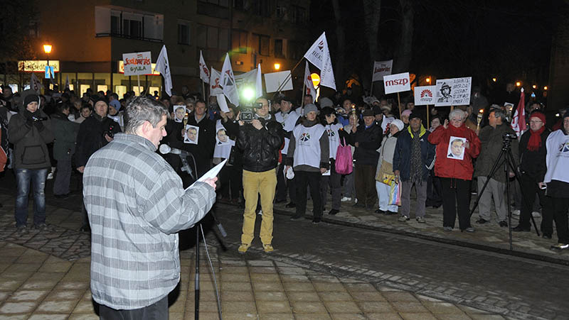 A Magyar Szolidaritás Mozgalom képviseletében Sajben Tibor az önkormányzati iskolák államosítása, a pedagógusok kényszernyugdíjazása, a tandíj bevezetése ellen emelte fel szavát. Beszédében hangsúlyozta, mivel Békés megyében alig van munkahely, a fiatalok elhagyják otthonukat, pedig szeretnének itt élni. Meglátása szerint Orbán Viktor magára hagyta a diákokat, a kétkezi munkásokat, a közalkalmazottakat és köztisztviselőket, a nyugdíjasokat, a hazai kis- és középvállalkozásokat. Földönfutóvá tette a fogyatékkal élőket, a közmunkásokat pedig a helyi hatalom jobbágyaivá tette. Ám 2012 októberében létrejött egy új erő, amely leválthatja az Orbán-kormányt. A szónok végezetül arra emlékeztetett, hogy a Magyar Szolidaritás Mozgalom, a Haza és Haladás Egyesület és a Milla létrehozta az Együtt 2014 Mozgalmat, amely célul tűzte ki az Orbán-rezsim leváltását, hogy országunkat növekvő és kiszámítható pályára állítsa.
