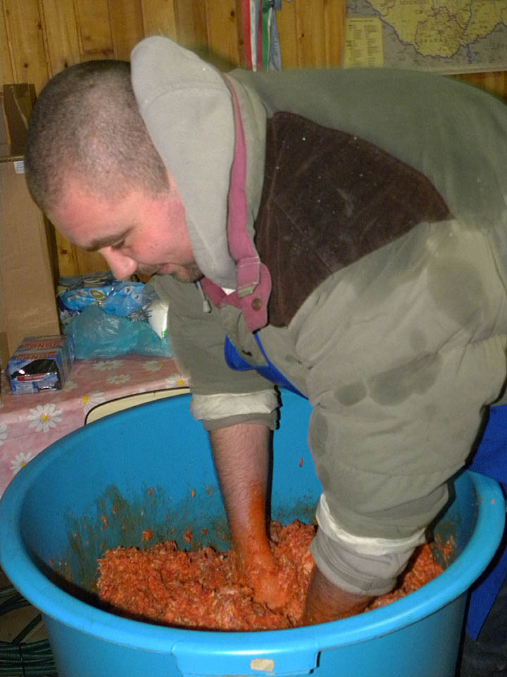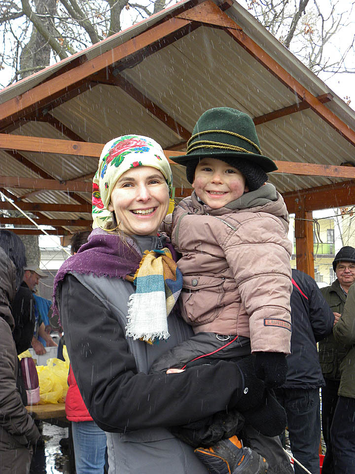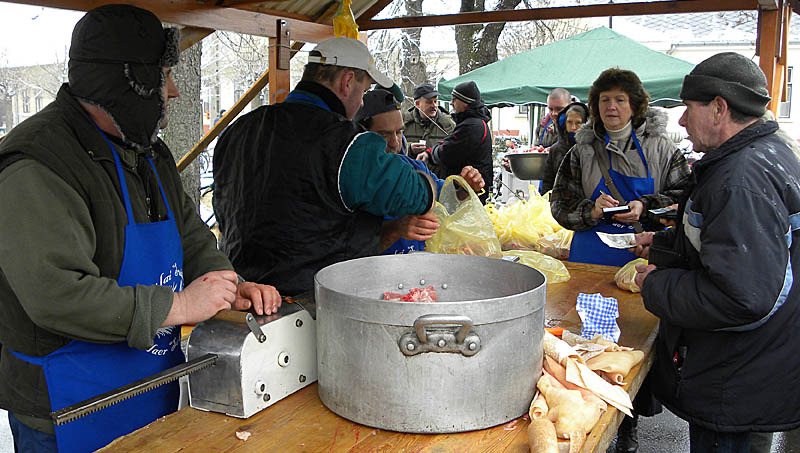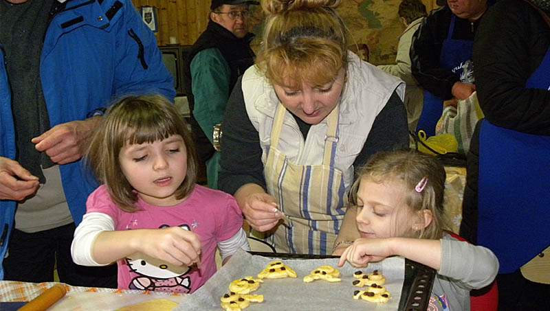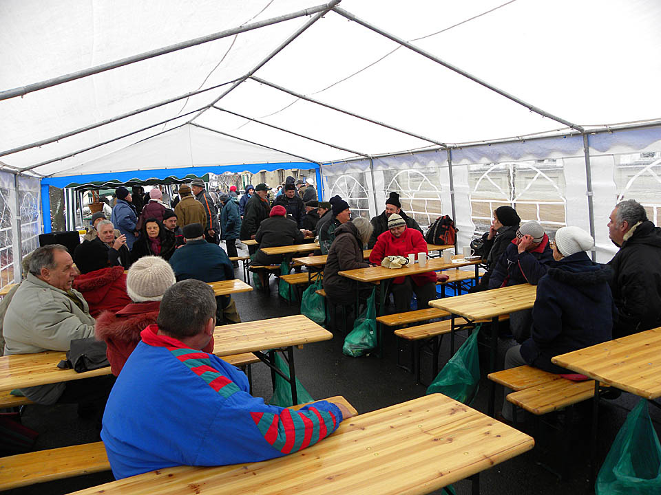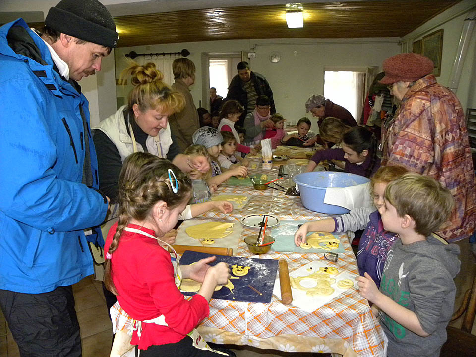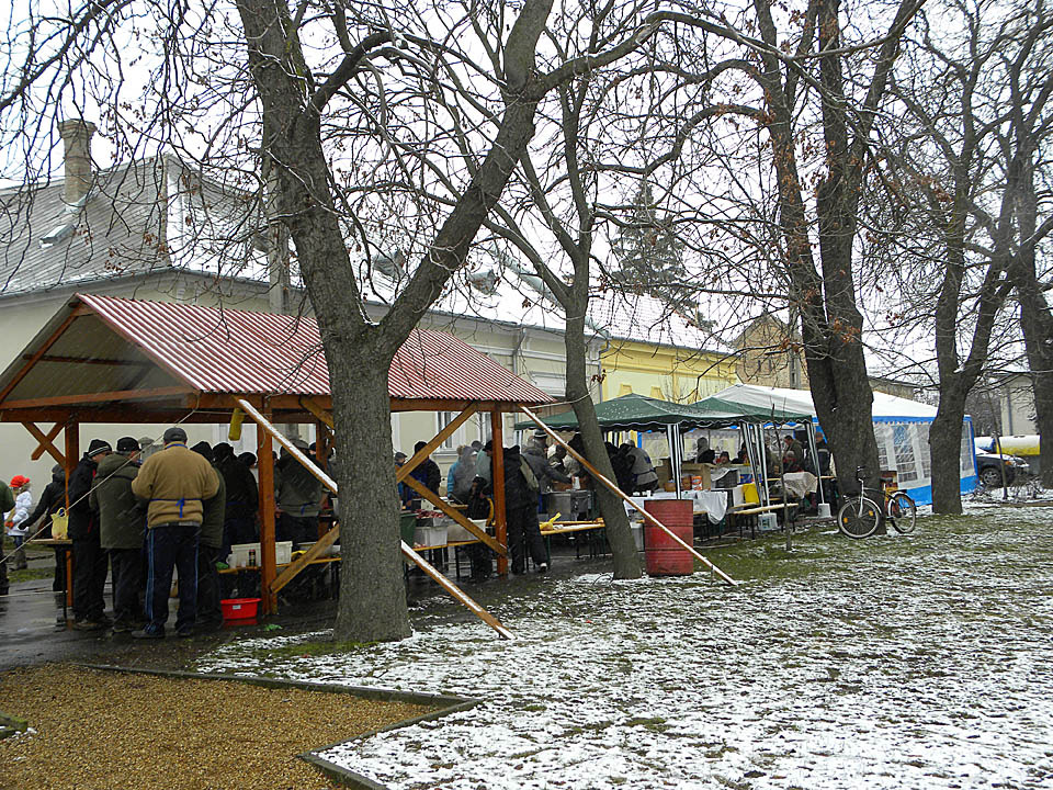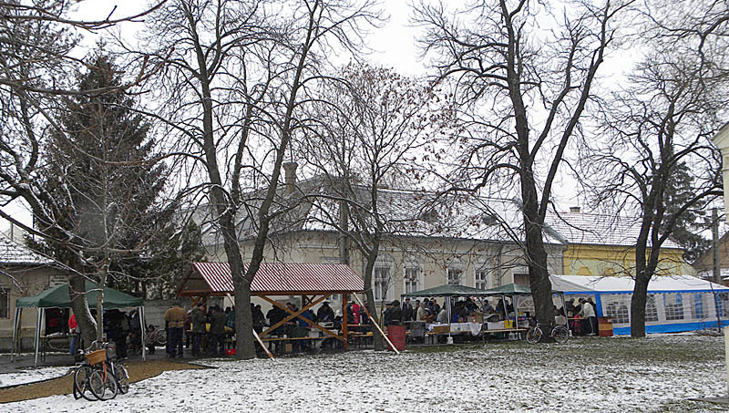 A hat böllér reggel háromnegyed hatkor látott hozzá a két 180 kilós disznó kopasztásához és feldolgozásához. Közben a vendégsereget pogácsával és pálinkával kínálták az Apor téren, ahol a maszkásoknak köszönhetően idén is felidézték a régi farsangi szokásokat. A programon a gyerekek sem unatkoztak, hiszen a Szűz Mária Kegytárgy Múzeumban délelőtt 11 órától kalácstésztából készíthettek disznófejet, a bátrabbak pedig Dani szamár hátán is tehettek egy kört a Szent József-templom előtt.