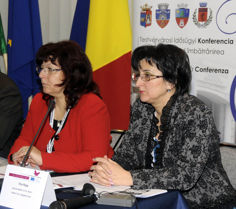 Erika Stark, az Aradi Közösség Fejlesztési és Juttatási Igazgatóság főigazgatója a Romániában élő idősek helyzetét elemezte, majd az általa vezetett igazgatóság, valamint a szervezet alá tartozó osztályok munkáját mutatta be a jenlévőknek. Ezután Popa Fira, az Aradi Időseket Ellátó Központ igazgatója az aradi idősek helyzetéről számolt be az egybegyűlteknek, majd Függ Zsolt Péter, az Agora Társadalomkutatási Alapítvány elnöke tartott az aktív időskorról és a generációk közötti szolidaritás európai évéről előadást.