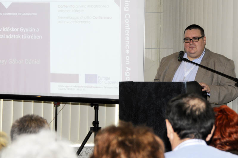 Dr. Nagy Gábor Dániel a Szegedi Tudomány Egyetem adjunktusa, a Szilágyi Tamás által korábban felvázolt, aktív idősek körében készült felmérés kiértékelt eredményeit részletezte. Felvetésében Gyula város egy idősbarát önkormányzat, amely más magyarországi településekhez képest sokkal több szolgáltatást és élhetőbb körülményeket biztosít a Gyulán élő idősek számára. Az előadásában bemutatott statisztikai adatok továbbá azt is igazolták, hogy a közösség és a társadalom számára hasznos polgárként élő aktív időskorúak sokkal jobb egészségben és jobb életminőségben élnek, mint a passzív, magányos idős polgárok.