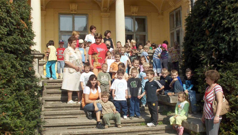 A kastélyig, ahol most iskola és kollégium működik, kicsit hosszú volt az út, a nap is melegen sütött, de az óvodások gondtalan kiránduló hangulatban meneteltek, gyűjtögettek. A rendben való séta teljesen biztonságossá tette utunkat, ami nagyon-nagy dolog, ha ennyi kicsi gyerekre kell figyelni. Óvodánk nevelési programjának egyik legfontosabb pontjából, a biztonságos közlekedésre nevelésből, sikerült követendő példát mutatnunk a gyerekeknek.