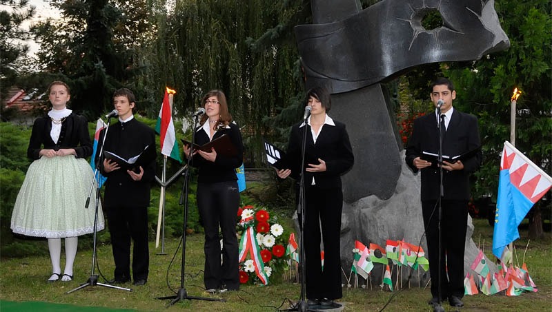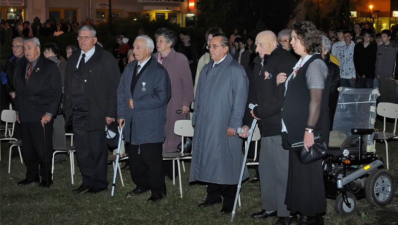 A kellemes késő őszi napsütés is a jó fél évszázaddal ezelőtti időjárásra emlékeztetett. Mire a beszéd véget ért, és elkezdődött a koszorúzás, beesteledett, és a téren meggyújtották az emlékezés fáklyáit.