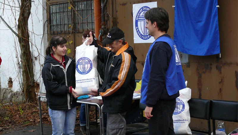 - Magyar Ökumenikus Segélyszervezet az EU Élelmiszer Segélyprogram keretében a gyulai szociális központjában 1100 családnak biztosít élelmiszer-segélycsomagot. A csomag lisztet, tésztát, kekszet, cukrot és tejet tartalmaz, összesen 13 kg mennyiségben. Ez a gyulai adományosztás része segélyszervezetünk országos segélyprogramjának. Most 300 településen mintegy 300 ezer ember fog részesülni ebből a segélyből. A 4 éve folyó segélyprogram keretében az első évben 400 tonna élelmiszert juttattunk el az önkormányzatokon, illetve a helyi családsegítő szervezeteken keresztül a rászorulókhoz. Második évben a mennyiség már 800 tonna volt, az idén pedig már 2000 tonna. A csomagok előzetes értesítés után vehetők át. Az értesítéseket a családsegítő szolgálatok küldik ki. A kiértesítettek 60-70 %-a jön el a segélycsomagot átvenni.